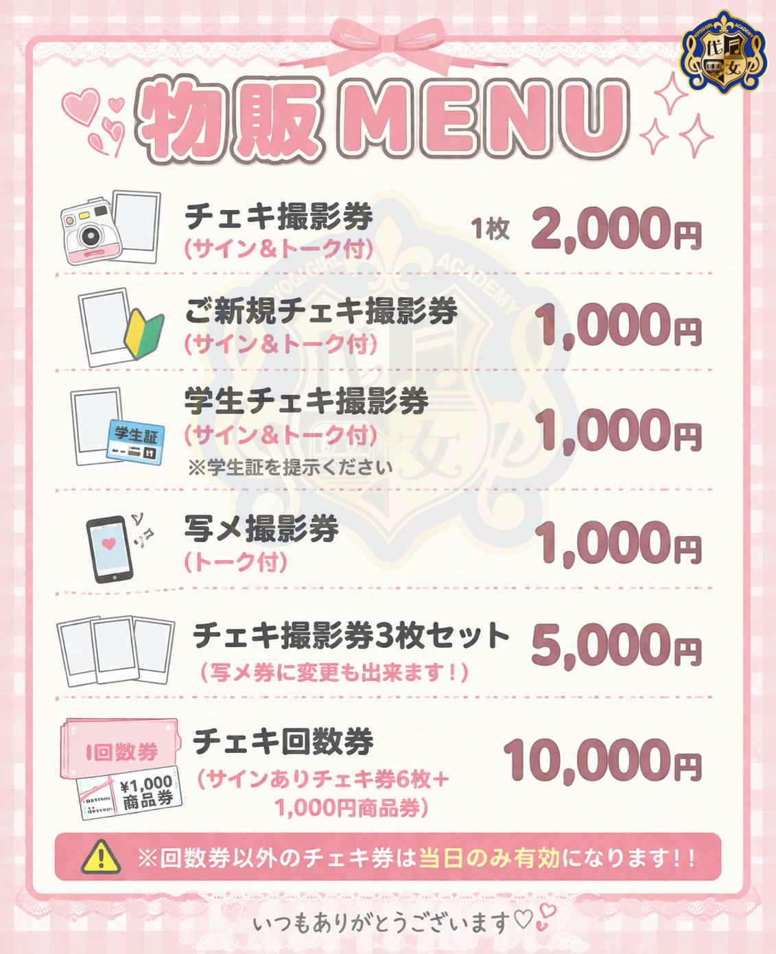 ※回数券以外のチェキ券は当日のみ有効になります!!