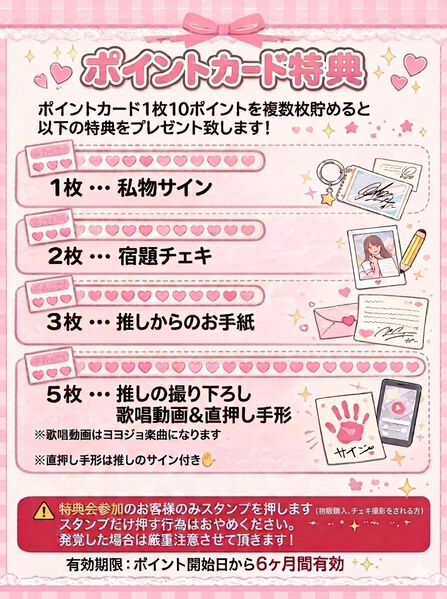・特典会物販レギュレーション、ポイントカードシステムは添付の画像をご確認ください。